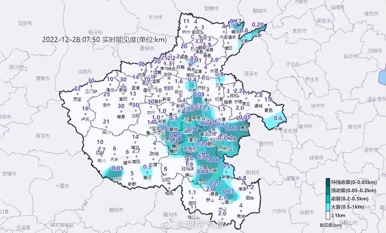 据河南气象今早发布消息称,目前,河南省许昌、漯河、驻马店、周口、南阳、平顶山、信阳、郑州、濮阳等地的部分地区有能见度不足500米的雾,局地甚至不足200米。提醒以上地区的司机朋友们注意出行安全,谨慎慢行。